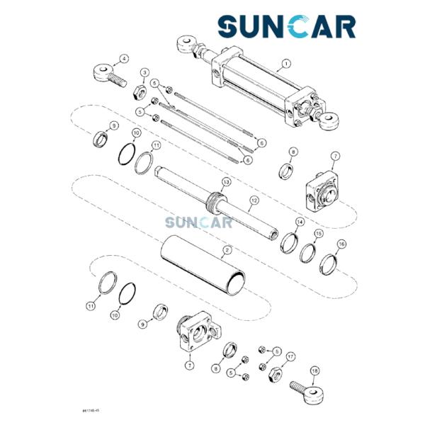 | 1 | G107720 | [1] | CYLINDER,Double Acting, 38.1mm Rod, 85.1mm Stroke | CAS ASSEMBLY, 2-3/4, 70, ID x 6-45/64 inch, 170 mm, stroke, steering, two-wheel drive front axle, Includes: Ref. 2 through 18 |